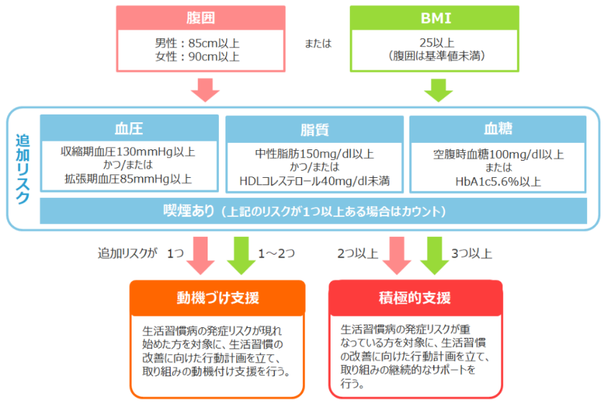 そして、積極的支援の方の方が動機づけ支援の方よりリスクが高いと捉え、より密な支援をしていきます。